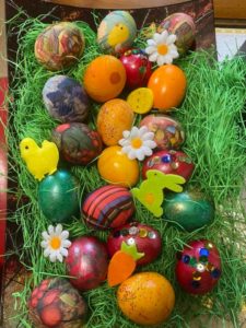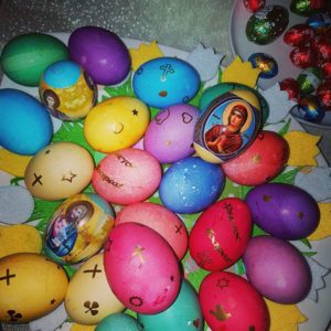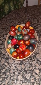 La „maison de garde“ est conservée jusqu’à la prochaine Pâques où elle est remplacée par une nouvelle. Les enfants sont très heureux de peindre et de peindre des œufs de Pâques, car ils participent également à cet important travail. Les œufs sont décorés de fleurs sauvages, de trèfle, de diverses plantes ornementales, peints à la cire puis généralement peints avec des oignons. Aujourd’hui, nous avons différentes façons et couleurs pour décorer et colorer les œufs de Pâques, bien que dans certaines régions et familles, les femmes au foyer adhèrent au traditionnel.