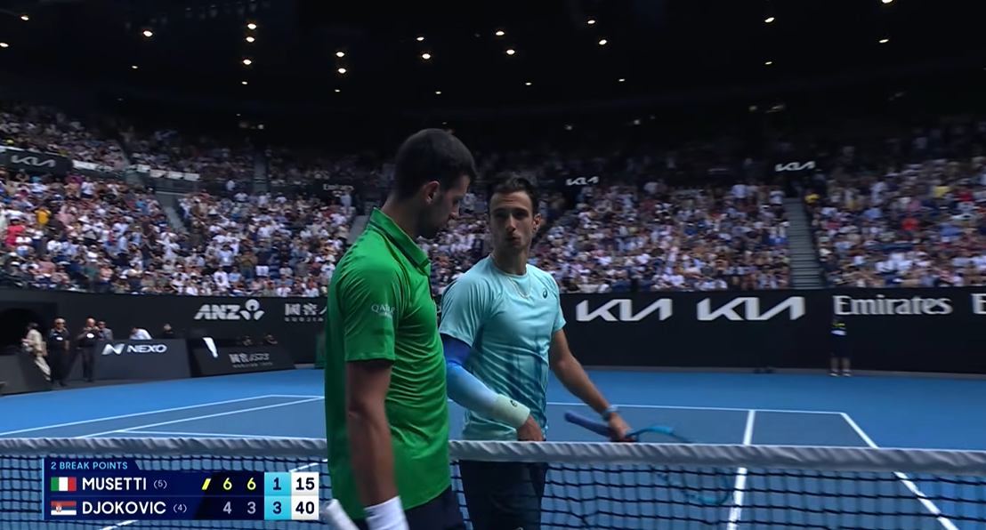 On je danas trebalo da pobedi – bile su reči Novaka Đokovića nakon novog plasmana u polufinale grend slema, petog zaredom. Izjava velikog šampiona možda i najbolje oslikava četvrtfinalni duel Australijan opena između Lorenca Muzetija i njega. Italijan je leteo „Rod Lejver arenom“, vodio je 2:0 u setovima, a onda je u trećem morao da odustane zbog povrede.