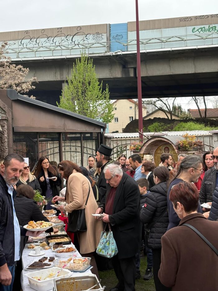 Po završetku liturgije, u porti crkve upriličeno je bratsko posluženje za sve prisutne. Vernici su se družili, razgovarali, delili radost praznika i zahvaljivali ocu Željku i sveštenstvu na organizaciji i toplini koja krasi ovu parohiju.