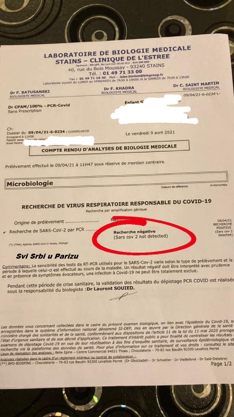 „U petak popodne nam stiže rezultat testa i na njemu piše da je moj sin megativan na Kovid-19. U tom trenutku smo svi osetili jedno veliko olakšanje i sreću ali i bes na sve što se desilo. Na takav način uplašiti dete od 13 godina je stvarno bezobrazno! Još jedan dokaz da je sve LAŽ!!!!“, za portal Svi Srbi u Parizu rekla je ova besna majka.