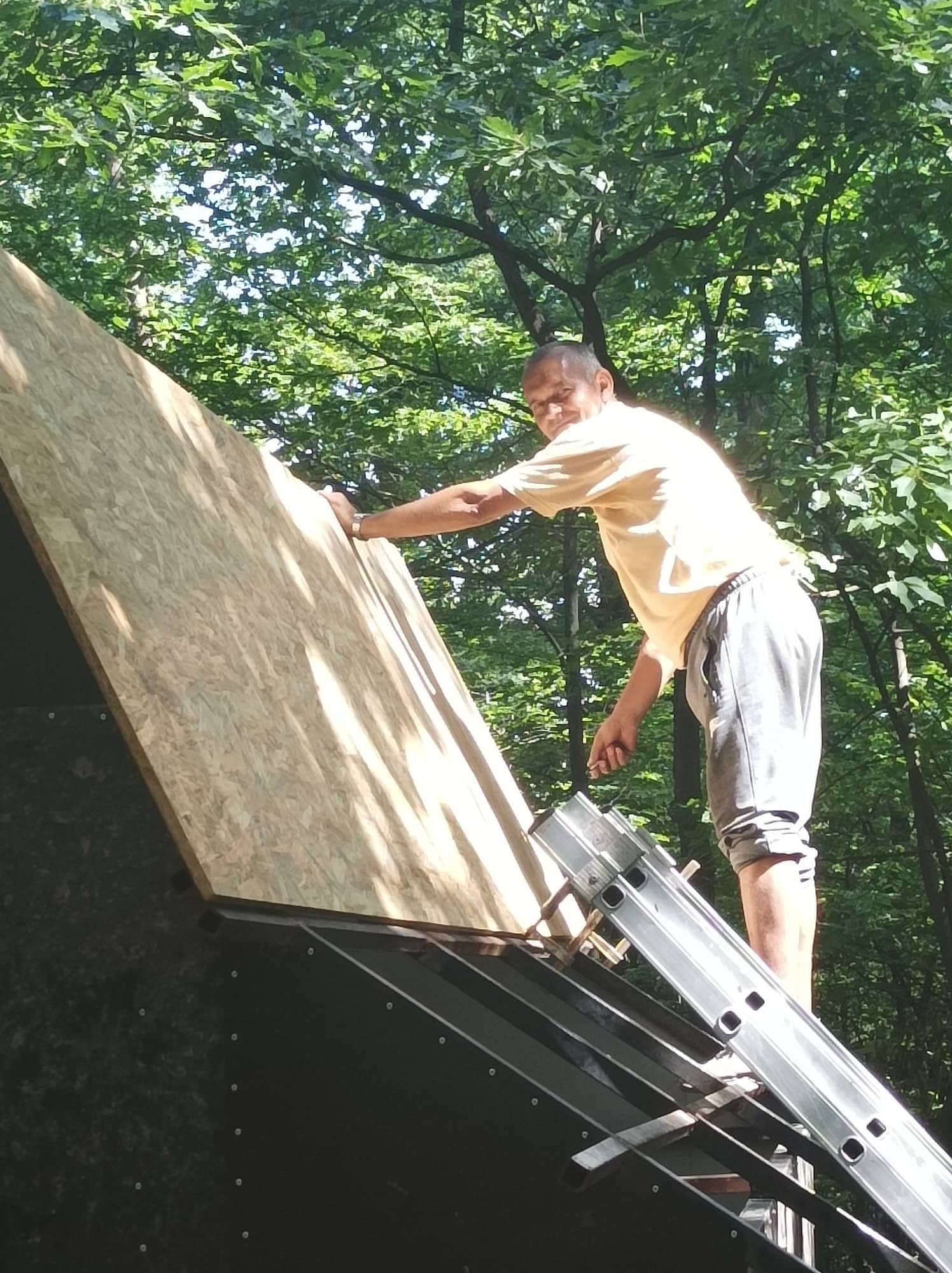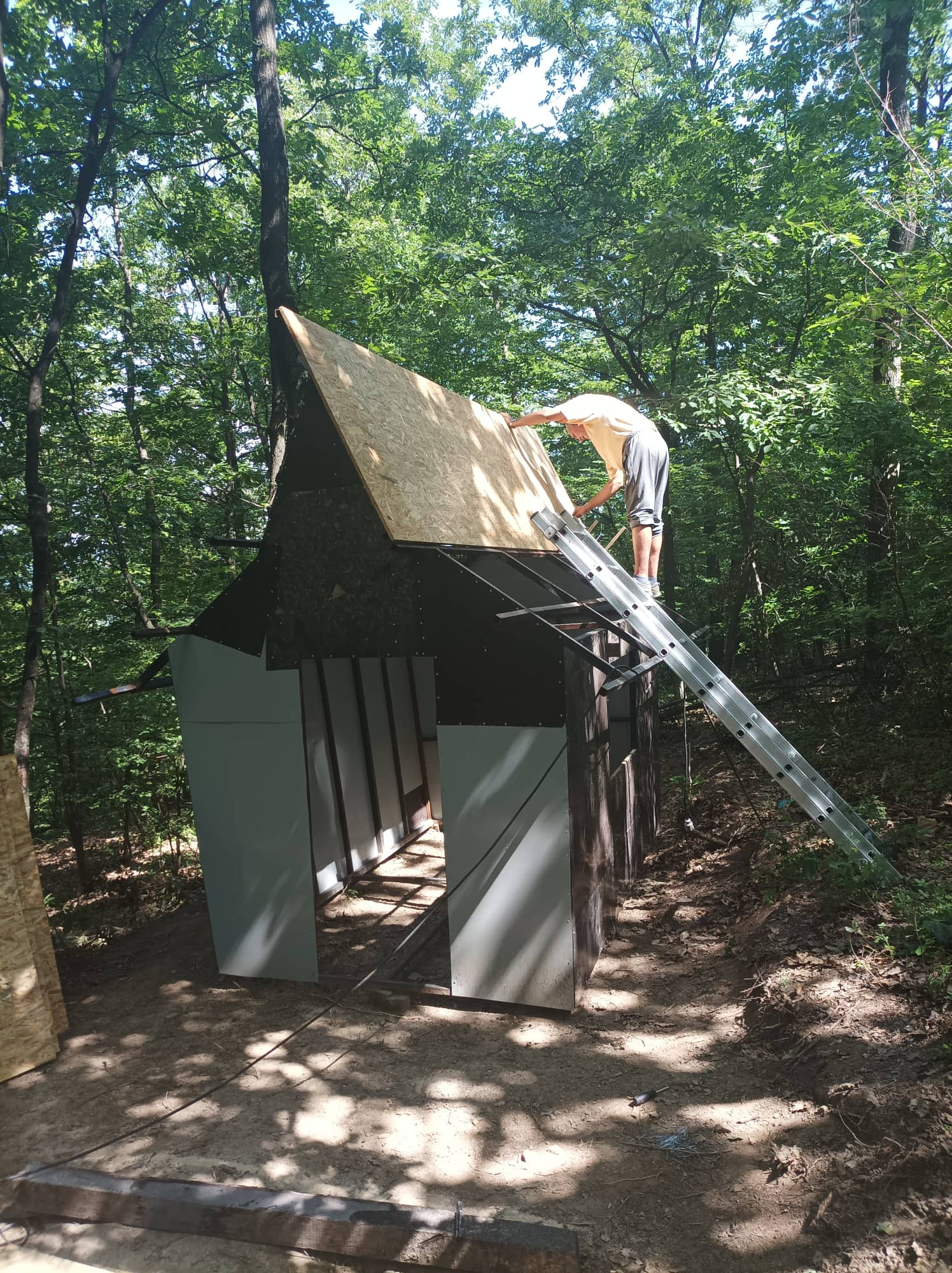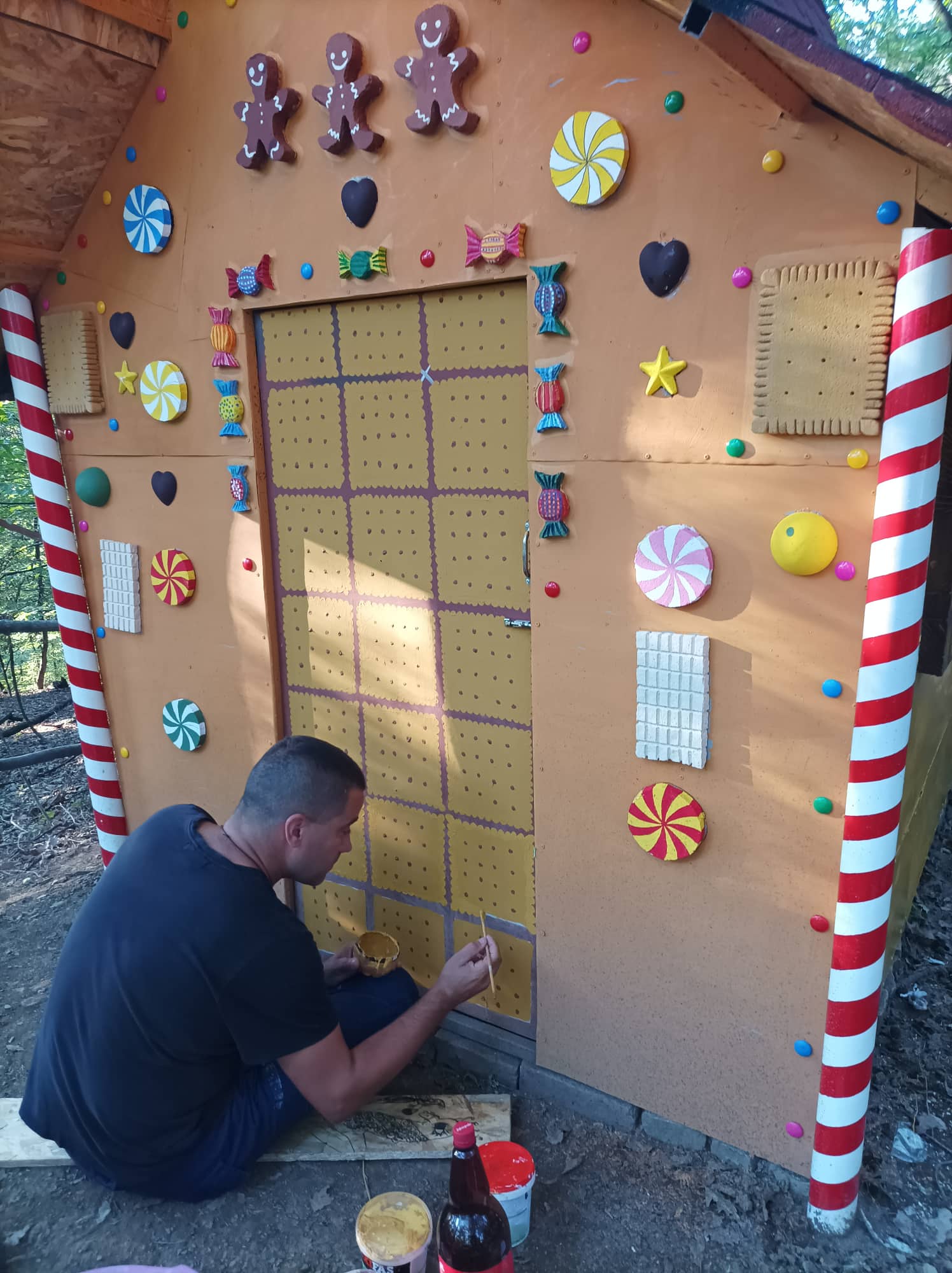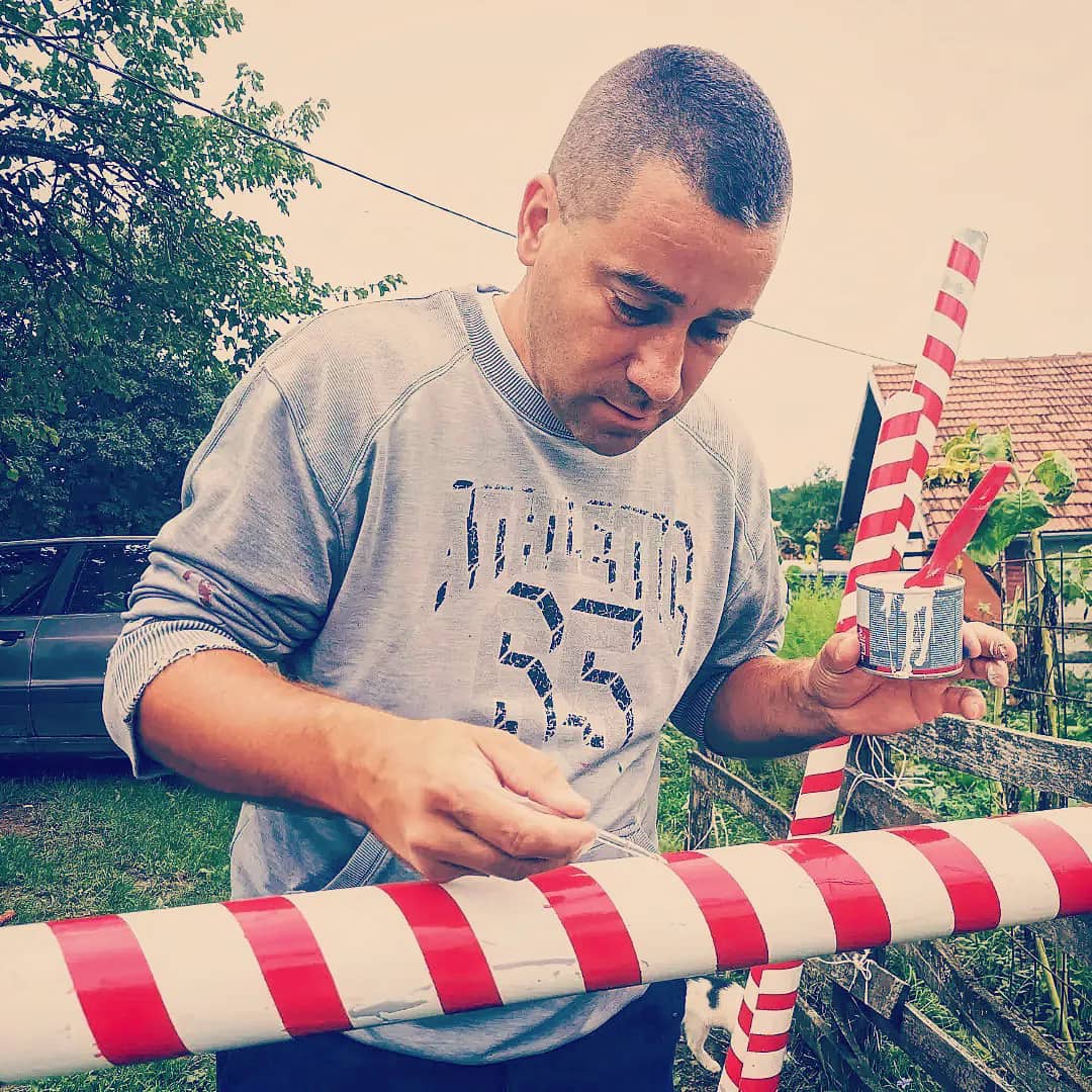 Radove sam započeo početkom marta, odmah čim je vreme dozvolilo. Kupio sam većinu materijala koji je bio potreban i krenuo sa radom. Otac Zoran mi je pomogao u zavarivanju konstrukcije koja nosi krov i zidove kućice. Komšija Dragan mi je pomagao oko postavljanja krova koji je napravljen od OSB tabli i pokriven tegolom, deca i supruga su bili tu da pomognu oko oslikavanja kućice, tako da bez dragocene pomoći sigurno sam ne bih uspeo sve da uradim.