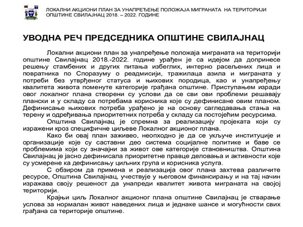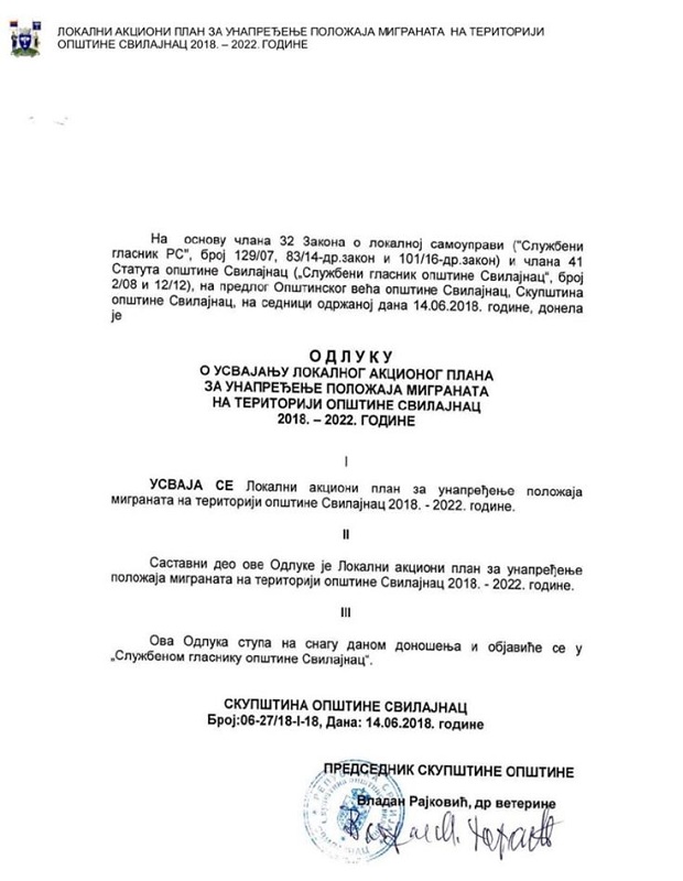 U nameri da dokažemo da čelnici Braničevskog okruga obmanjuju građane i prikrivaju istinu, redakcija portala “TPKNEWS” došla je u posed Odluke o usvajanju lokalnog akcionog plana za unapređenje migranata na teritoriji opštine Svilajnac, koju je Skupština opštine Svilajnac usvojila 14. juna 2018. godine.