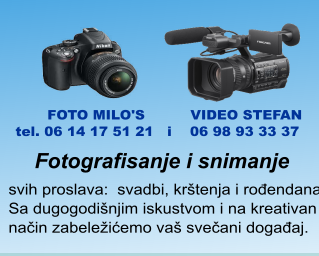 Svadbe, ispraćaje, rođendane, krštenja, punoletstva i sve druge svečanosti. Vršimo izradu laboratorijskih slika. Pošto imamo iskustvo više od 20god. u ovom poslu, to je i sigurnost za Vas uz kvalitet usluge. Ne zaboravite da fotograf čini da slavlje ne padne u zaborav.