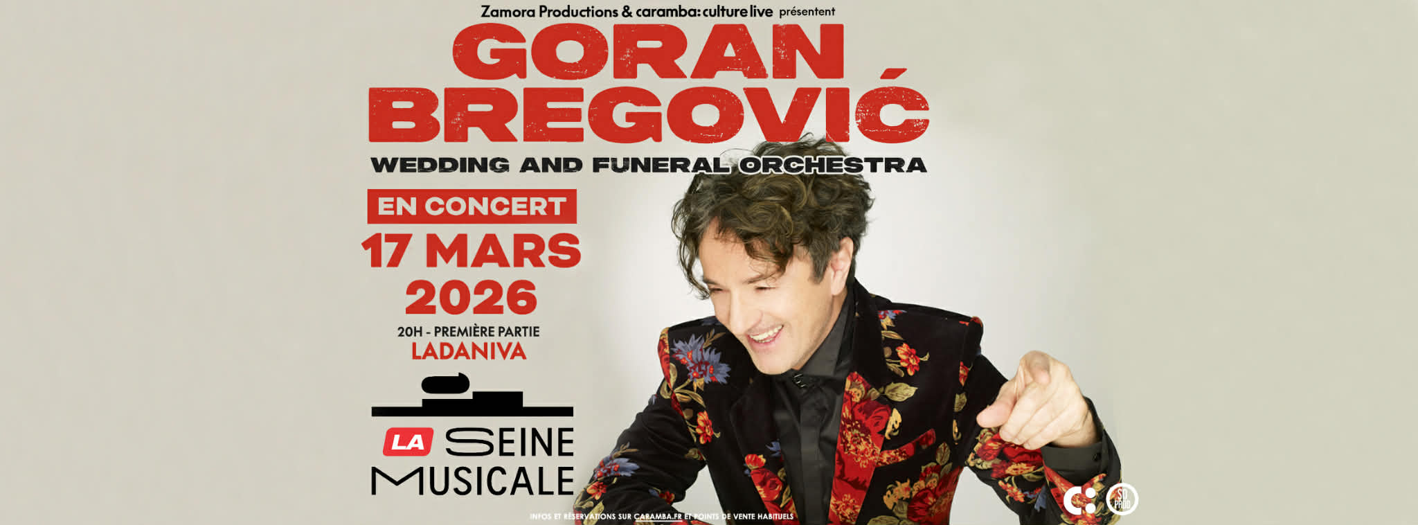 Goran BregoviÄ, zajedno sa svojim Äuvenim Orkestrom za svadbe i sahrane, stiže 17. marta 2026. godine u prestižnu dvoranu La Seine Musicale u okviru velike turneje povodom izlaska novog albuma poÄetkom 2026!