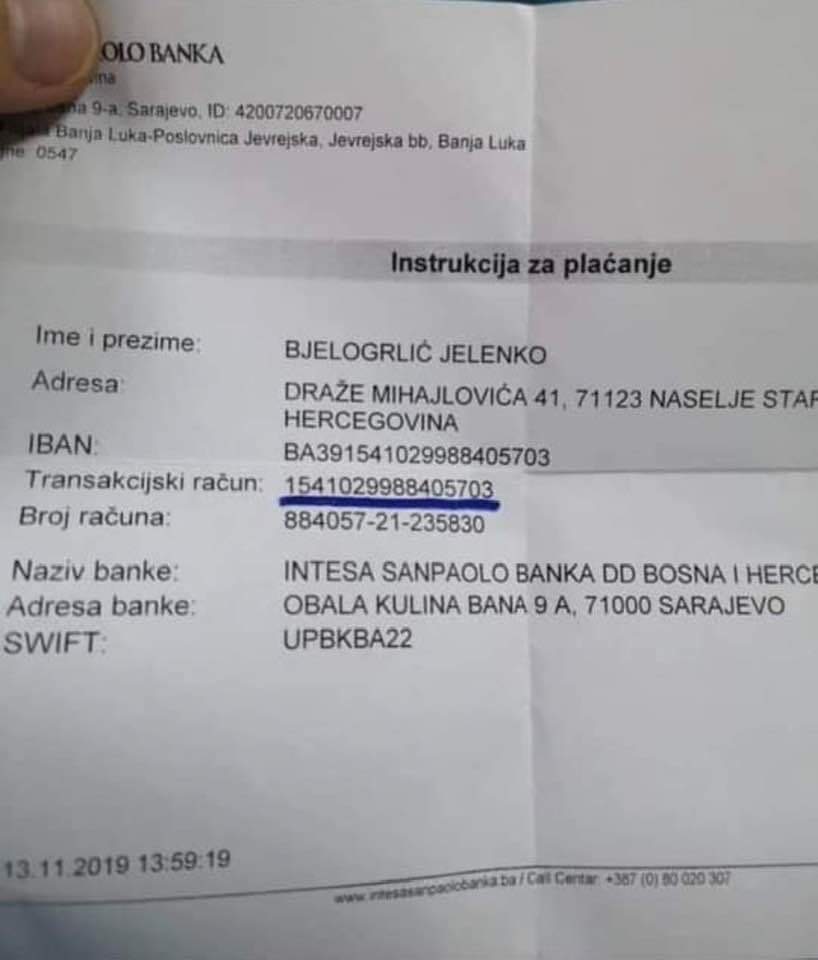 Na skroz dole fotografiji možete videti predračun bolnice a koji nam je poslao Ivanin otac Jelenko. A na sledećoj fotografiji možete videti Jelenkov račun na koji se uplaćuju donacije (ne na direktni račun bolnice) jer je njegova banka garantovala da bi bolnica prihvatila da primi malu Ivanu.