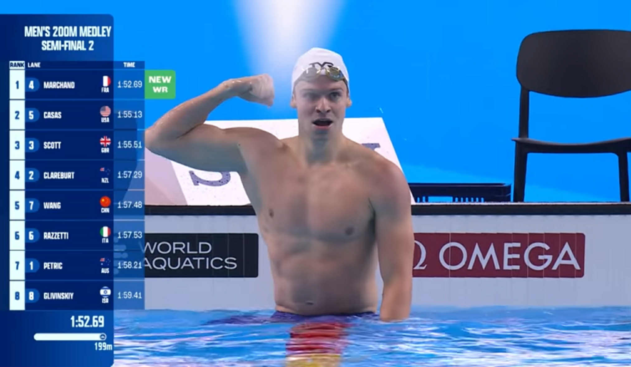 Francuski plivač Leon Marchand, svetski šampion na 200 metara mešovito sa Svetskog prvenstva u Singapuru 2025. godine, već sada poseduje izuzetno bogatu riznicu trofeja sa samo 23 godine. Rođen 17. maja 2002. godine, Marchand je nesumnjivo glavni akter svetskog plivanja.
