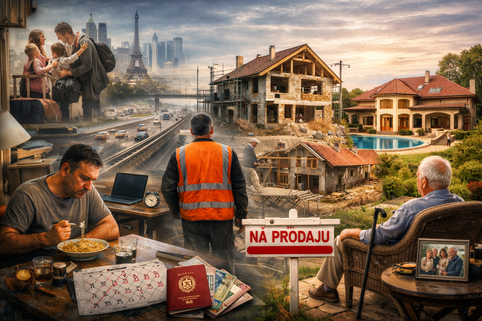 Ove godine nećeš nigde ići trošak je veliki a konto se taman ispraznio. Deca više u Srbiju i ne idu jer slabo koga tamo poznaju a i šta će u Srbiji kad su baba i deda umrli. I dalje vredno radiš jer treba šta imati kad se u penziju ode a i ta penzija vrlo brzo stigne, brže nego sto si ikad mislio. Eto te kao penzionera nazad u Srbiju u svoju vilu da konačno počneš živeti tim boljim i lepšim životom ali te malo strah jer osetiš da nešto oko srca preskače. Ostalo je još nekoliko zdravstveno neizvesnih godina a na tebi starom teret održavanja 400m2 prelepe vile.