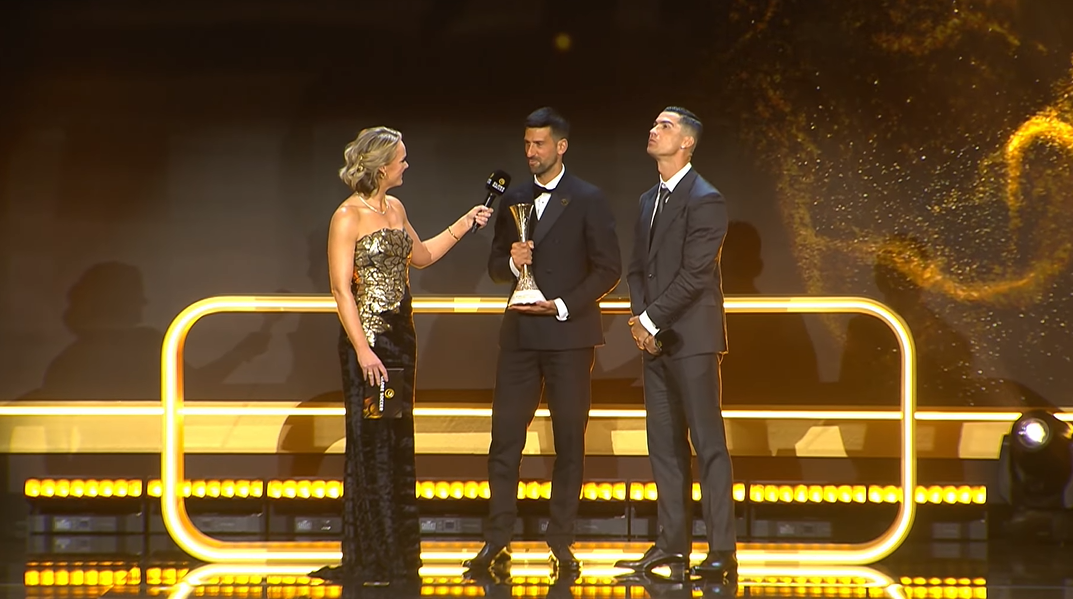 Trofej je Đokoviću uručio Kristijano Ronaldo, najtrofejniji igrač u istoriji ovog priznanja. Susret dvojice sportskih giganata – srpskog tenisera i portugalske fudbalske ikone – bio je jedan od najsnažnijih i najsimboličnijih trenutaka večeri, uz ovacije publike i snažne poruke poštovanja.
