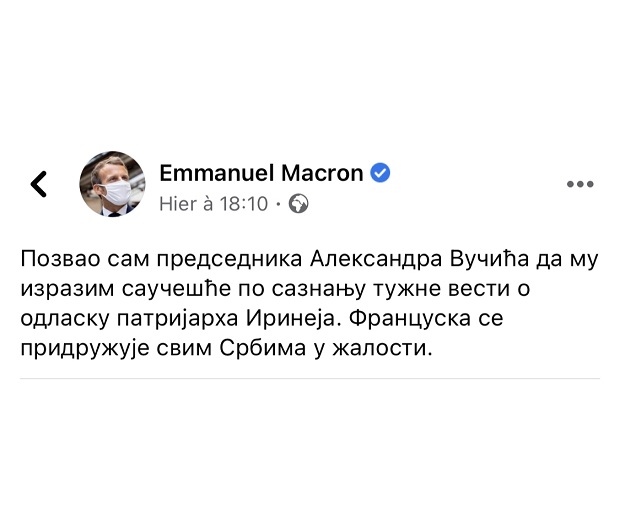 Makron na ćirilici: „Francuska se pridružuje svim Srbima u žalosti“