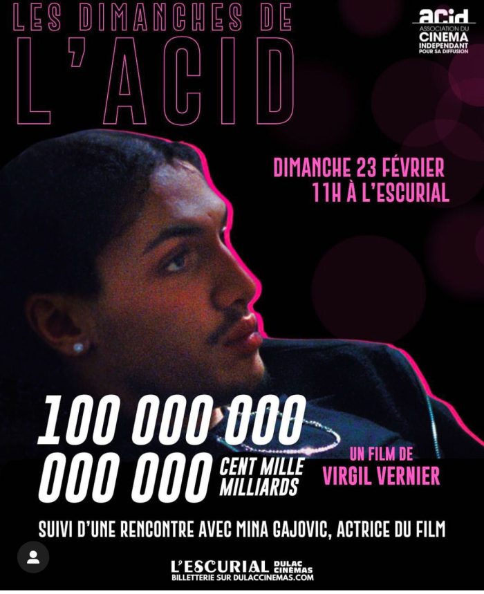 Notre talentueuse Mina Gajović, dont nous avons souvent parlé, continue de briller sur la scène cinématographique ! Ce dimanche, une projection spéciale du film „100 000 000 000 000“ (Cent mille milliards) aura lieu à Paris, dans le cadre du programme prestigieux „Les Dimanches de L’ACID“, dédié au cinéma indépendant et audacieux.