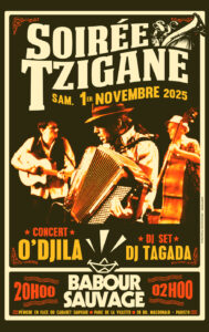 Au programme : le groupe O’Djila, connu pour ses interprétations passionnées de notre musique des Balkans, klezmer et d’Europe de l’Est, ainsi que DJ Tagada, dont les sets enflamment les pistes de danse parisiennes. Une nuit de fête, de partage et d’énergie, sans frontières ni barrières culturelles.