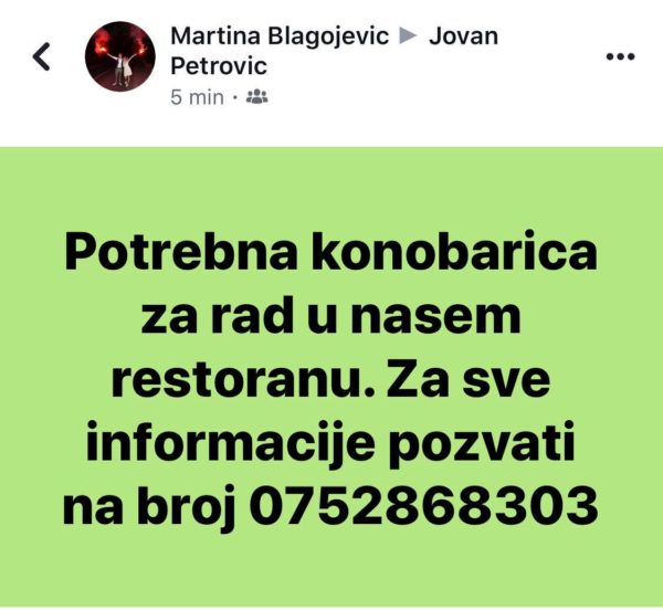 Prenosimo vam oglas za naš restoran koji traži konobaricu. Sve informacije možete naći na fotografiji ispod.
