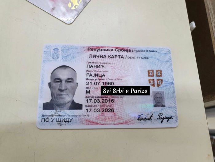 Pronađen je novčanik sa ličnom kartom i vozačkom dozvolom na ime Panić Rajica iz Šida. Dokumenta se sada nalaze u kineskoj prodavnici na adresi ,,10 rue de Bagnolet“ u 75020 Paris. Grupa ,,Svi Srbi u Parizu“ obaveštava sve naše čitaoce da ukoliko poznaju Panić Rajicu obaveste ga o lokaciji gde se njegova dokumenta trenutno nalaze.