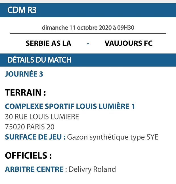 Posle pobede u prvom kolu i ispuštene pobede u gostima u drugom kolu regionalne lige R3, „Srbija“ iz Pariza spremno dočekuje ekipu „FC Vaujours“.