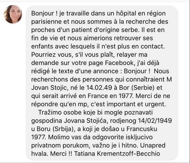 Njegov sin nema načina i novac da svog oca dopremi i sahrani u Srbiju. Zato se mole svi ljudi dobre volje koji mogu da pomognu, da se jave i da se ova tužna priča završi tako što će Jovan biti sahranjen u Srbiji.