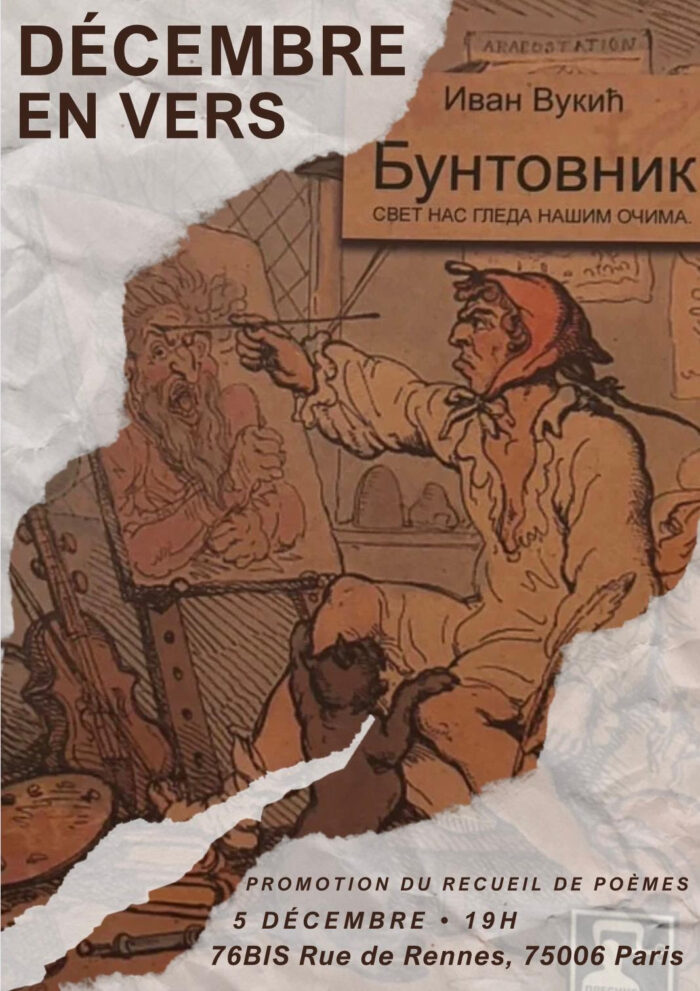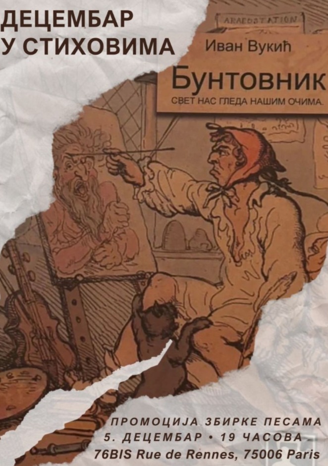 Pariz će 5. decembra biti domaćin književnog događaja kakav se retko viđa — večeri koja potpuno menja ustaljeni obrazac promocija i publiku pretvara u aktivni deo stvaralačkog procesa. U okviru programa „Decembar u stihovima“ biće predstavljena zbirka pesama „Buntovnik“ autora Ivana Vukića, ali na način koji će posetioce uvući pravo u unutrašnji svet njegovih stihova.