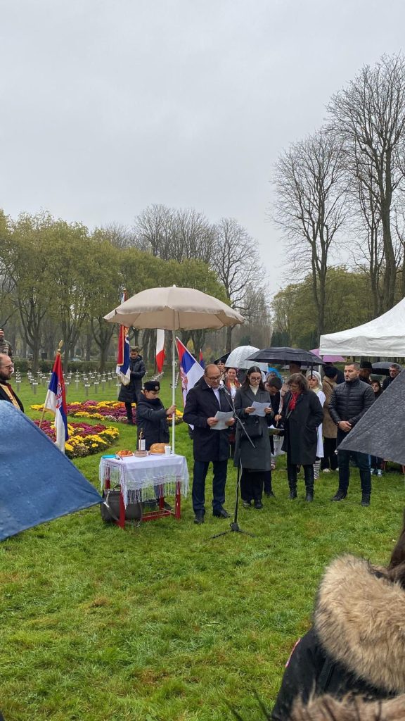 „Ovaj dan nije samo prilika da se setimo onih koji su stradali, već i da obnovimo obavezu da čuvamo mir i bratstvo između najvećih saveznika. Francuska i Srbija nisu samo sveznici, mi smo prijatelji po izboru i braća po duhu. U srcu našeg prijateljstva leži zajednički ideal slobode, časti i međusobnog poštovanja. Suočeni s novim izazovima i brzim promenama u svetu, Francuska i Srbija imaju važnu odgovornost, ne samo da očuvaju, već i da unaprede ovo vekovno prijateljstvo“.