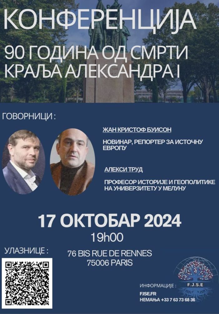 Sa velikim zadovoljstvom vas pozivamo da se pridružite izuzetnoj konferenciji koju organizuje „Federacija mladih Srba Evrope“. Ovaj značajan događaj je posvećen obeležavanju 90. godišnjice smrti kralja Aleksandra I Karađorđevića, istaknutog vladara koji je ostavio dubok trag u istoriji srpskog naroda.