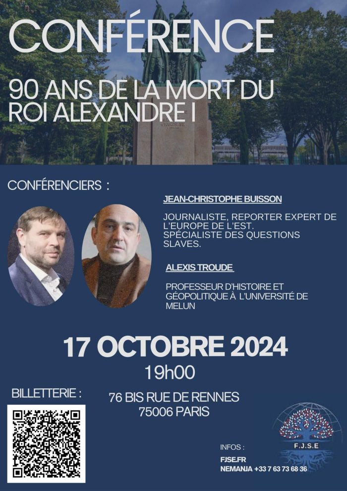 Učestvuju ugledni govornici Jean-Christophe Buisson i Alexis Troude, koji će podeliti svoja znanja i perspektive o kralju Aleksandru I Karađorđeviću. Ova večer će biti bogata diskusijama, otkrićima i prilikama za razmenu mišljenja među učesnicima.