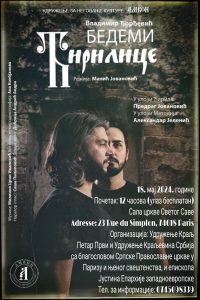 Predstava „Bedemi ćirilice“ u produkciji Udruženja za negovanje kulture „Amvon“ koja govori o životu i radu Ćirila i Metodija i njihovoj borbi ka pismenosti, jeziku i prosvećenosti biće prikazana 18. maja u sali crkve Svetog Save u Parizu (23 Rue du Simplon, 75018 Paris) sa početkom u 12 časova. Ulaz je besplatan.