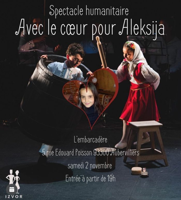 KUD „Izvor Paris“ poziva vas da postanete deo nečega posebnog i značajnog! U okviru njihove višegodišnje akcije „Srcem za srce Srbije“ organizuju humanitarni koncert „Srcem za Aleksiju“, sa ciljem prikupljanja sredstava za lečenje male Aleksije. Njena borba je naša borba, i svaka ruka može napraviti razliku!