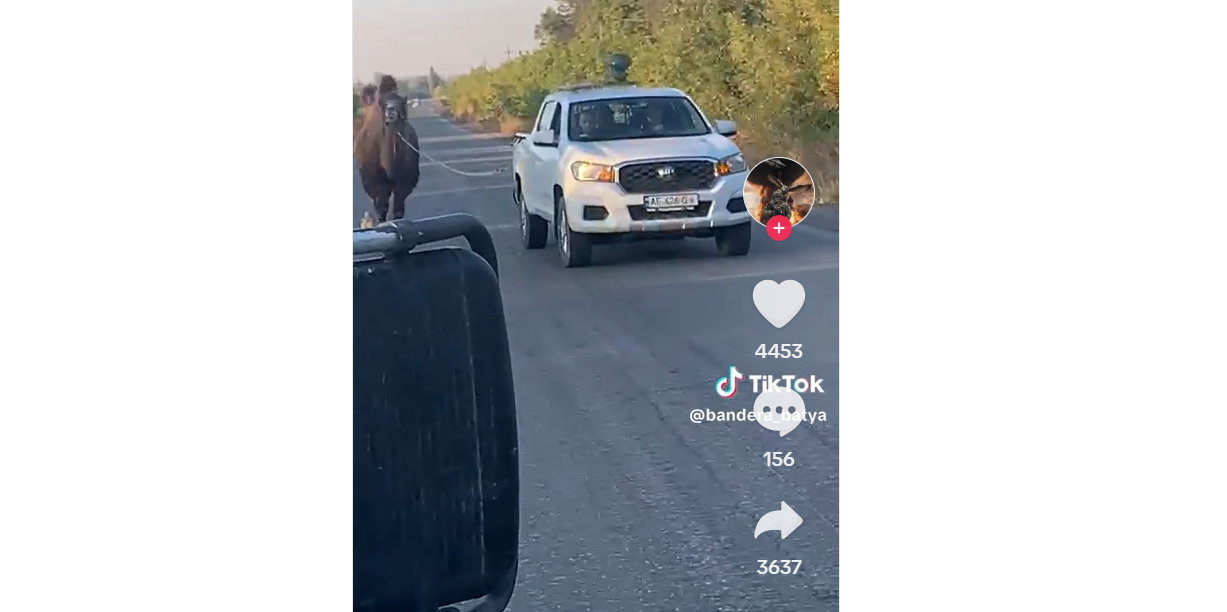 U videu objavljenom na TikToku, vidi se dvogrba životinja kako kaska sredinom puta, vezana za beli pikap. Pored nje, vojnik pokušava da popravi oštećeni motor oklopnog vozila iz kojeg se širi dim. Snimak je zabeležio drugi vojnik, očigledno zabavljen neobičnim prizorom, daleko od bilo kakve pustinje. „Do đavola, kamila! Potpuno sam šokiran, zapanjen!“, uzvikuje, ne uspevajući da obuzda smeh. „Do đavola, šta ti radiš ovde?“. Ispod snimka stoji natpis: „Specijalne jedinice ukrajinskog Ministarstva odbrane ne samo da uništavaju neprijatelja, već i vraćaju borbene kamile.“