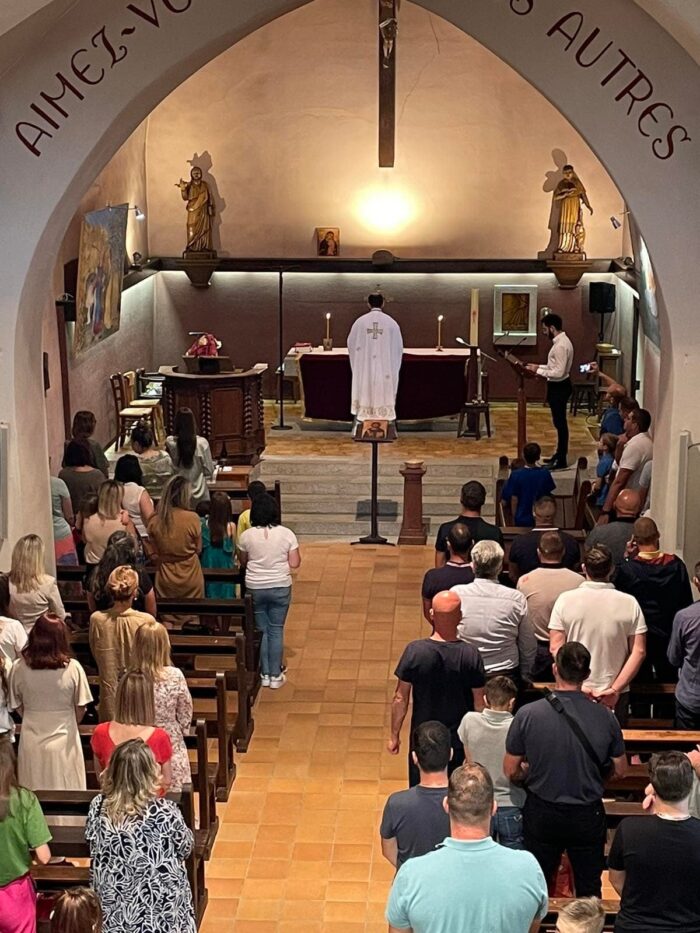 „Zatim je Dragan Radisavljević kontaktiro lokalnu katoličku Parohiju koja nam je izašla u susret i ustupila jednu crkvu iz njhove parohije za slavu i liturgiju. Koliko su bili velikodušni, od njihovih 6 crkava dali su nam da biramo, a mi smo odlučili sa jednim francuzom po imenu François koji opslužuje tu parohiju i u 90. godini je uspeo u svemu da nam pomogne. Odlučili smo se za katoličku Crkvu Svetog Petra u jednom malom selu po imenu Ayse. Onda nam je Otac Goran koji je imao obaveze poslao iz Mulhouse, Oca Maksima, koji je došao i koji nas je ispoštovao“, detaljno nam je objasnio Ranko.