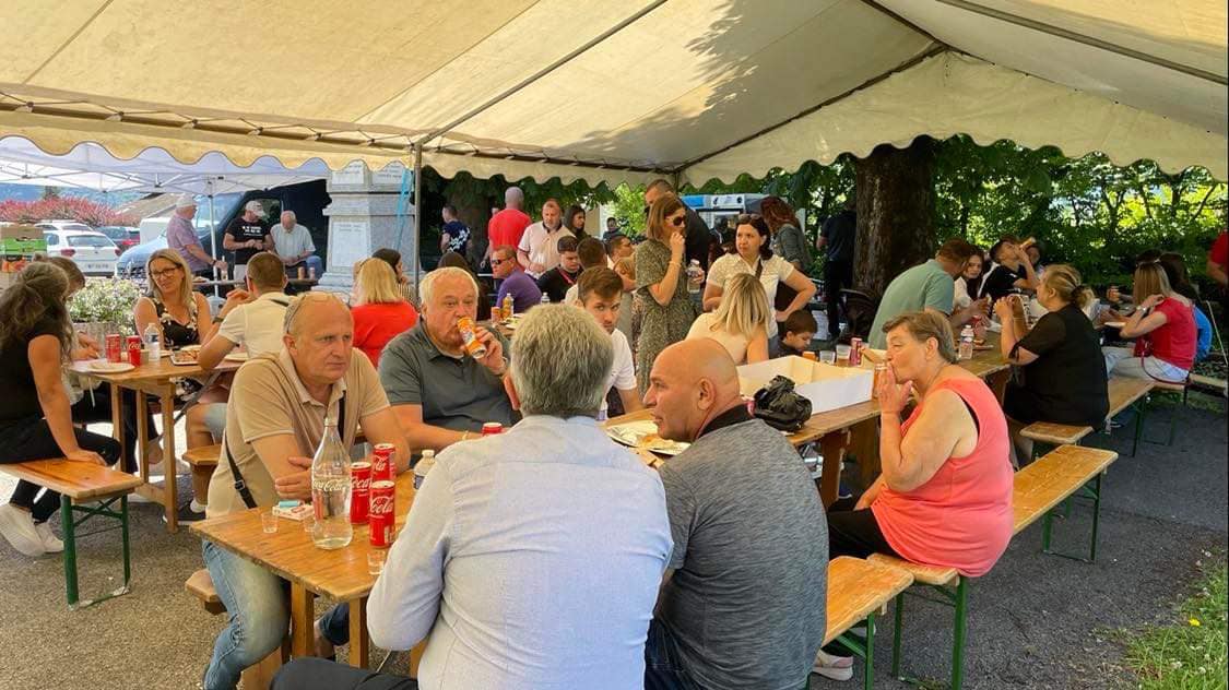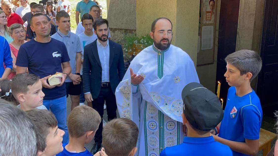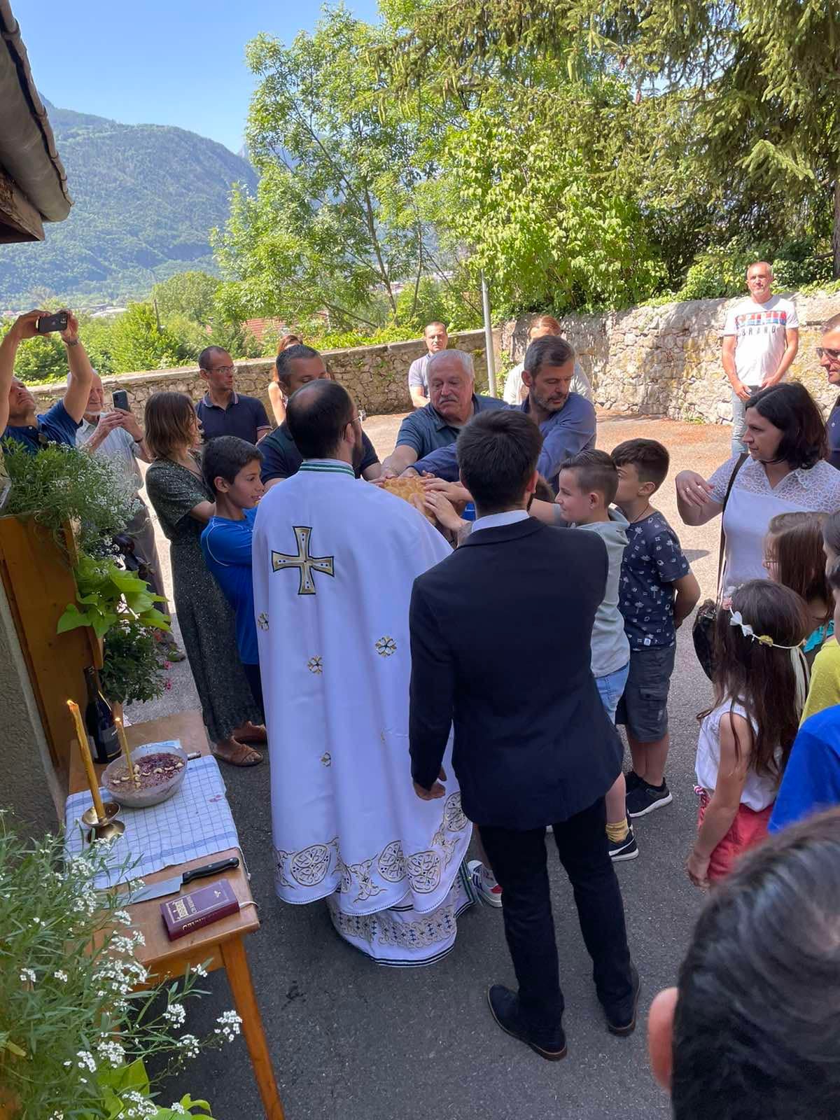 A onda dolazi najlepši deo. Pripreme za ovaj predstojeći praznik. Biran je domaćin slave i ta čast je pripala Branislavu Miciću sa svojom suprugom Danijelom i četvoro dece . A da bi slava prošla u pravo prazničnom raspoloženju kako dolikuje srpskoj tradiciji na ražnju ssu se našli prasići i jedno jagnje. Bilo je tu i pečenih pilića koji su obogatili već bogatu trpezu za ovu prvu slavu. Iza organizacije je stalo udruženje „9 jugovića“ i svi ljudi dobre volje. Sve je bilo spremno da se u zdravlju i spasenju proslavi slava. Postavljen je bio šator a služila se bogata trpeza. Liturgija je brojala oko 120 ljudi i to je više nego zadovoljavajuće. Ispoštovani su svi običaji do lomljenja kolača a Branislav Micić je predao slavu Zoranu Milanoviću za 2023. godinu.