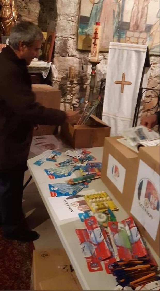 Od školskog pribora se prikupljaju rezači (zarezalje), lepak, trake, lenjiri, trouglovi, ulgomeri, šestari, makaze, četkice i boje. Pribor se prikuplja u u srpskoj pravoslavnoj crkvi u Nici svakog vikenda (subota i nedelja od 9.30 – 12. 30), kao i na dane Badnji dan, Božić i Bogojavljanje u istom vremnskom periodu. Svi oni koji žele da pošalju pomoć mogu da dobiju sve informacije na mail asufson@outlook.fr