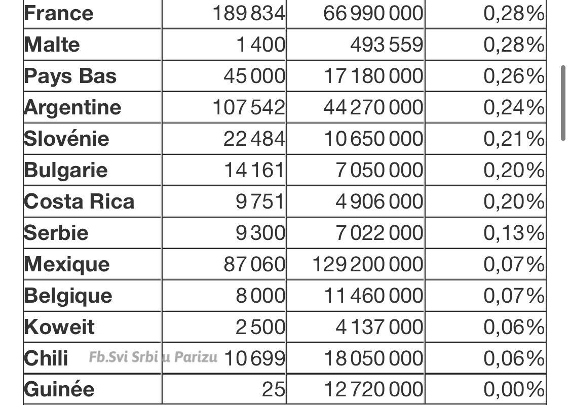 Građani Srbije i Francuske su među najnepoverljivijim što se tiče vakcine i na dnu su lestvice po zainteresovanosti za vakcinaciju. Takođe su na dnu liste onih koji su se do sada vakcinisali sa 0,28% u Francuskoj i 0,13% u Srbiji.