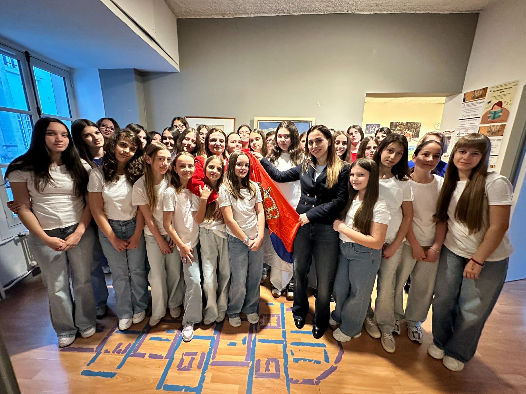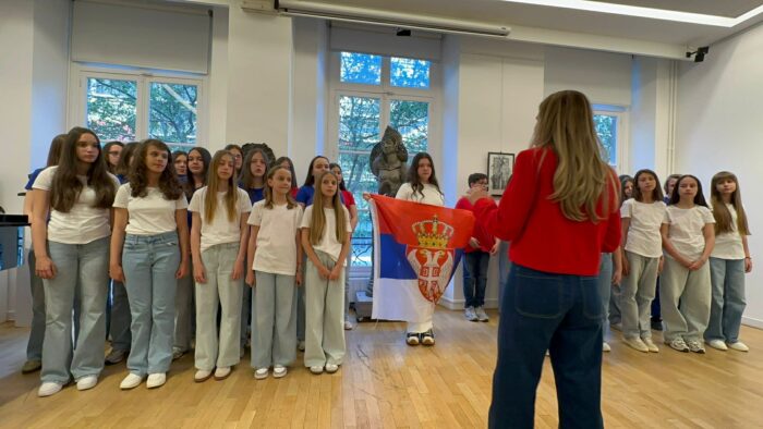 Na sceni su na ovoj smotri horova, zajedno sa vršnjacima iz drugih škola iz Srbije, pokazali bogatstvo naše kulture i snagu srpske pesme. Svaki ton bio je ispunjen emocijom, a publika je imala priliku da oseti ponos i nadu – sve ono što srpski narod nosi kroz istoriju. Posebnu emociju je izazvala pesma „Vladaj Bože“ koju je napisao Sveti Vladika Nikolaj Velimirović uz dirigentsku palicu sjajne Sandre Marković koja je došla zajedno sa decom i bila zadužena za njih. Dok su deca pevala, zvuk se širio centrom Pariza a slučajni prolaznici, Francuzi, su zastajivali i uživali u ovim anđeovskim glasovima.