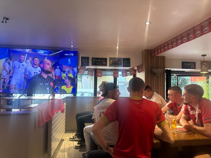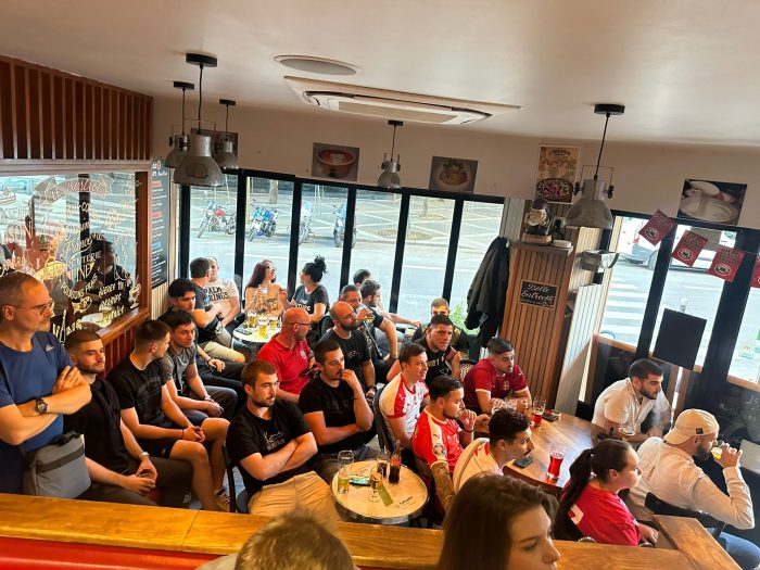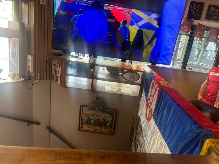 Atmosfera je bila fantastična, a publika je bodrila našu reprezentaciju sa velikim entuzijazmom, noseći omiljene dresove. U jednom trenutku, kafić je odjekivao povicima „Srbija, Srbija!“, što je dodatno podiglo navijački duh i zajedništvo među prisutnima.