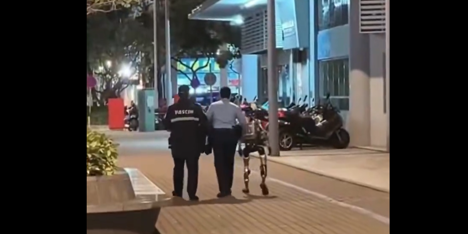 Snimak prikazuje ženu kako viče i maše torbom prema malom robotu, koji više puta podiže ruke u vazduh. Na snimku se zatim vide dva policajca kako sprovode robota „Unitree G1“ niz ulicu, dok ga jedan od njih vodi držeći ga za rame.