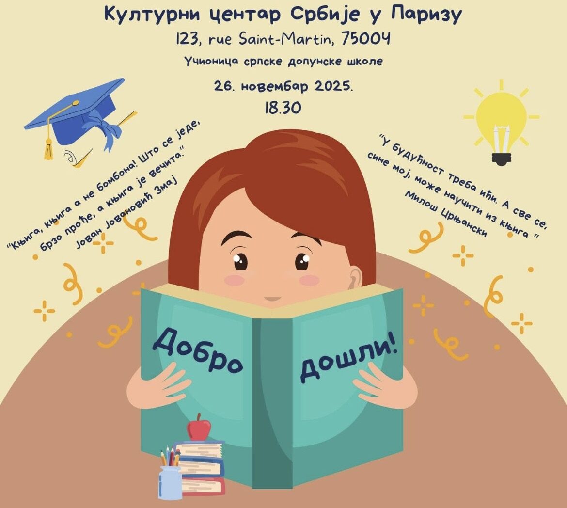 Događaj će biti održan u Kulturnom centru Srbije u Parizu, u učionici Škole, u sredu 26. novembra 2025. godine u 18.30 časova.
