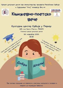 Dopunska srpska škola Ministarstva prosvete Republike Srbije, u saradnji sa Udruženjem „Spoj Connexion“, upućuje poziv svim zainteresovanima da prisustvuju posebnom kulturnom događaju posvećenom negovanju srpskog jezika i pisane reči. Učenici škole predstaviće svoje utiske o pročitanim knjigama na srpskom jeziku, kao i dela najvećih srpskih književnika, uz osvrt na knjige koje najradije čitaju.