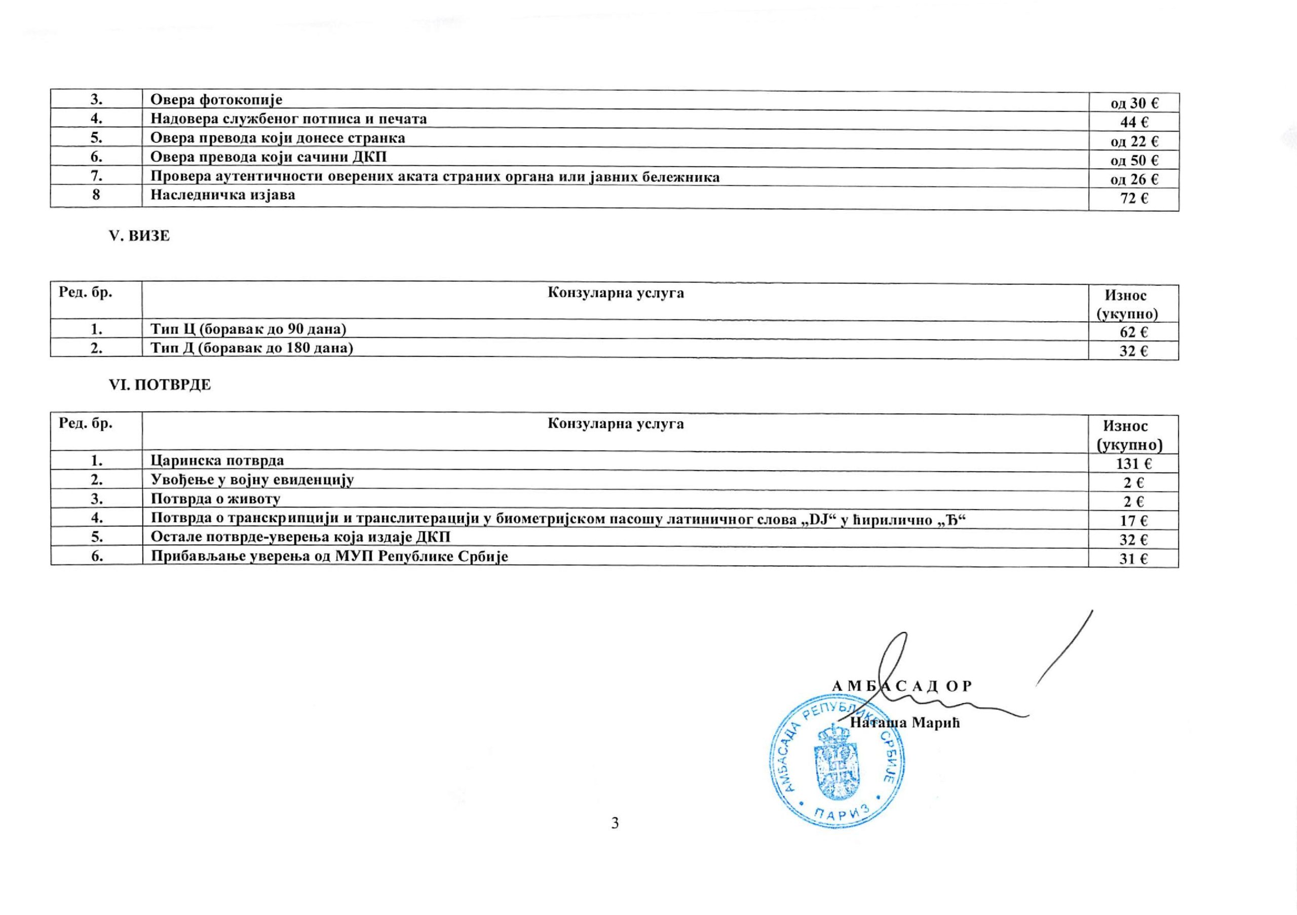 konzularnih usluga u Konzularnom odeljenju Ambasade Republike Srbije u Parizu. Plaćanje će moći