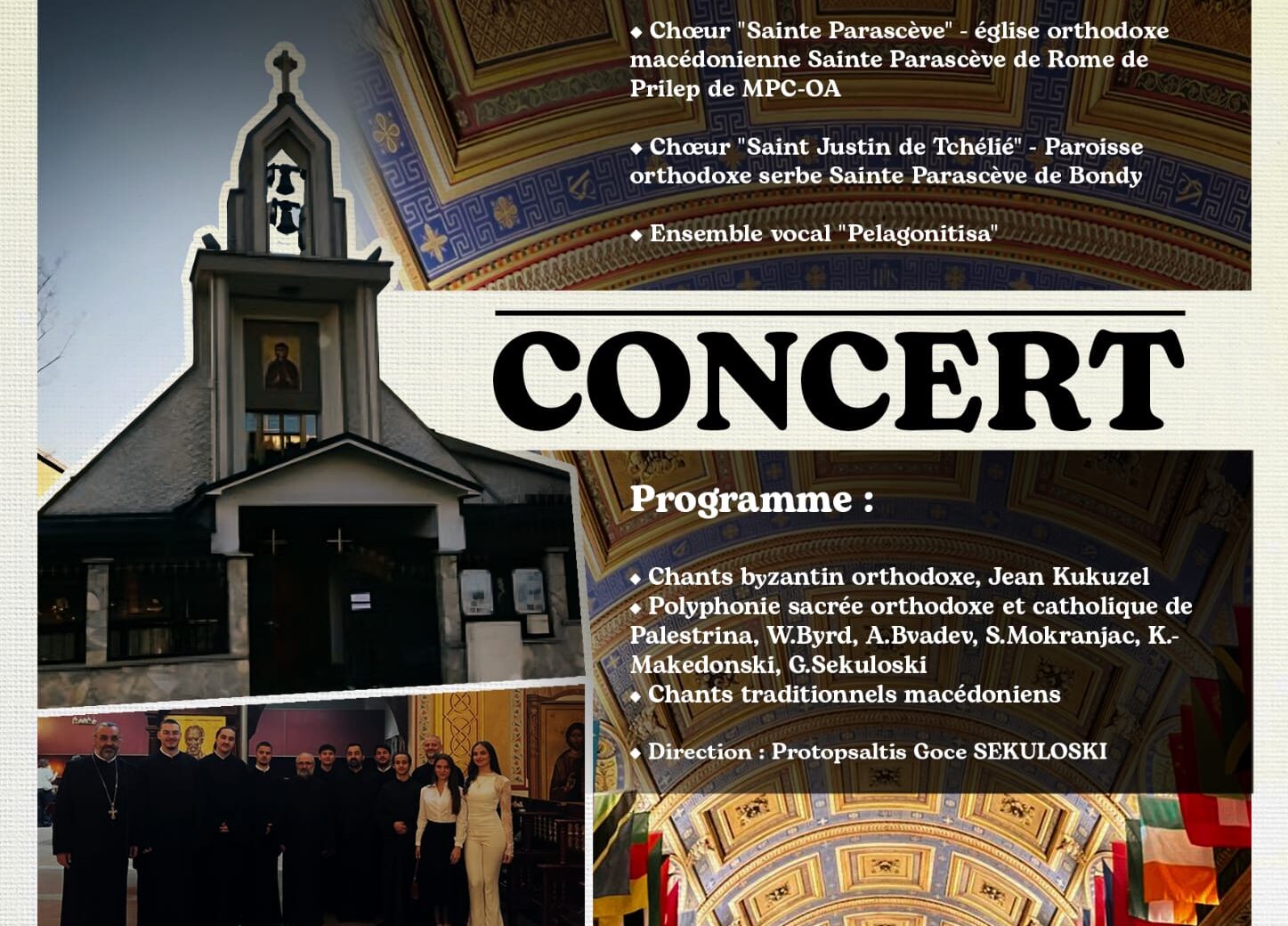 U nedelju, 26. oktobra 2025. godine u 19:30 časova, u veličanstvenoj Chapelle Saint Vincent de Paul u Parizu (95 Rue de Sèvres, 75006 Paris), održaće se poseban koncert posvećen duhovnoj i horskoj tradiciji pravoslavnih naroda. Ovaj kulturno–duhovni događaj okuplja vrhunske izvođače iz Makedonije i Francuske, koji će kroz muziku preneti duh vere, zajedništva i bogatstva muzičke baštine.