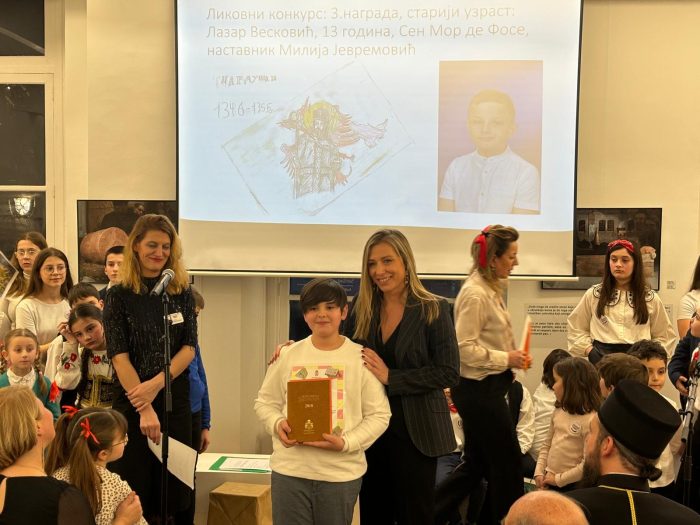 U okviru svečanosti, dodeljene su i nagrade učenicima koji su učestvovali na konkursu za literarne i likovne radove na temu Srbije. Mnoga deca su inspirisana Svetim Savom, te su njegovu figuru predstavila u svojim radovima. Na konkursu su učestvovali učenici dopunskih srpskih škola iz cele Francuske, a nagrade je uručila ambasadorka Ana Hrustanović.