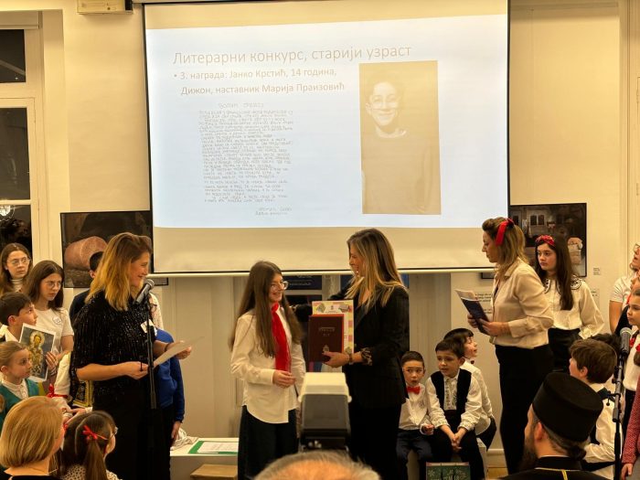 U okviru svečanosti, dodeljene su i nagrade učenicima koji su učestvovali na konkursu za literarne i likovne radove na temu Srbije. Mnoga deca su inspirisana Svetim Savom, te su njegovu figuru predstavila u svojim radovima. Na konkursu su učestvovali učenici dopunskih srpskih škola iz cele Francuske, a nagrade je uručila ambasadorka Ana Hrustanović.