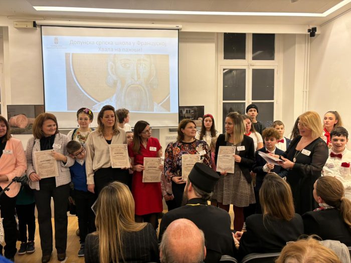 Na kraju svečanosti, koordinatorka dopunske nastave Marija Praizović dodelila je zahvalnice svim učiteljicama, naglasivši njihovu važnu ulogu u očuvanju srpskog jezika i kulture među mladima u dijaspori. Takođe, posebne zahvalnice uručila je direktorki Kulturnog centra Srbije u Parizu Natali Beljanski, kao i Nenadu Milosavljeviću i Mići Aleksiću za njihovu podršku radu srpskih dopunskih škola.