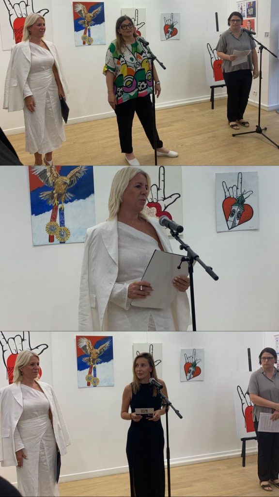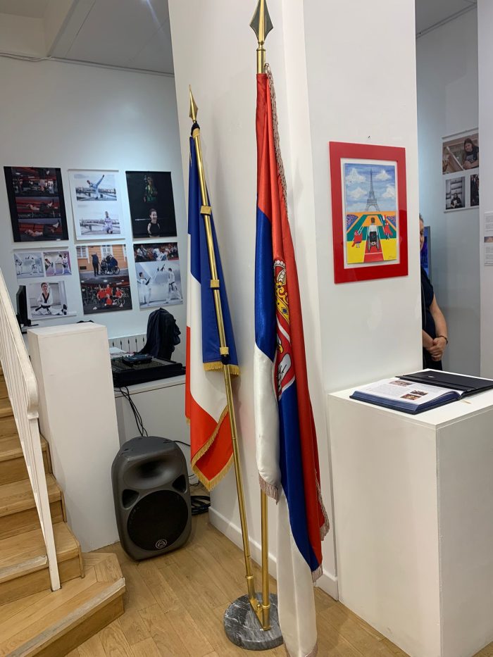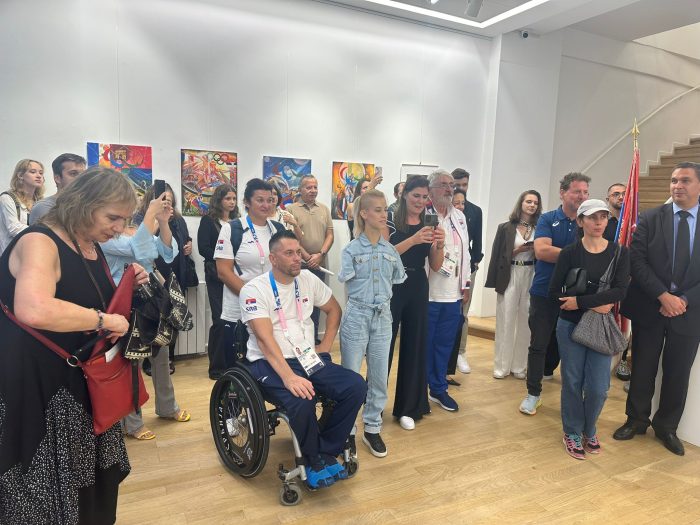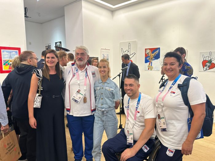 U subotu, 24. avgusta, u Kulturnom centru Srbije u Parizu, svečano je otvorena multimedijalna izložba „Umetnost i sport“, povodom predstojećih Paraolimpijskih igara. Ova jedinstvena izložba, koja će trajati do 20. septembra, ističe kreativni potencijal i umetničke radove osoba sa invaliditetom. Dejana Bačko, poznatija kao „Devojka sa krilima“ oslikala je na početku izložbe univerzalni simbol ljubavi, rečenicu „Volim te“ na znakovnom jeziku koristeći elemente karakteristične za Olimpijske igre u Parizu 2024. Njena inspirativna poruka, namenjena svim Srbima u Parizu, nalazi se na kraju ovog teksta.
