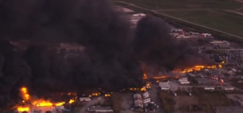 Snimci sa mesta nesreće prikazuju plamenove koji gutaju obližnje zgrade i oblake crnog dima koji se uzdižu iznad grada. Policija je odmah izdala naredbu o evakuaciji i zabrani kretanja u krugu od osam kilometara oko aerodroma, upozoravajući građane da se drže podalje od područja.