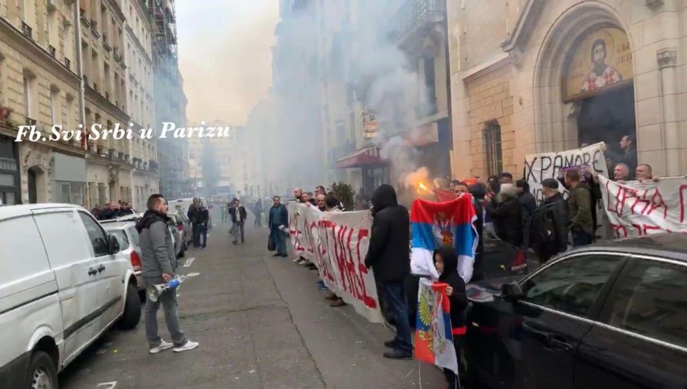 (VIDEO,FOTO)“NE DAMO SVETINJE“. SRBI IZ PARIZA POSLALI SNAŽNU PORUKU SA PROTESTA