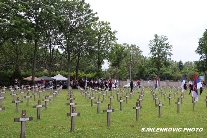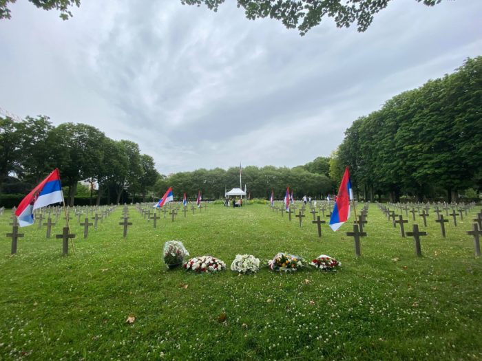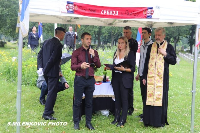 Posle uvodnih izlaganja pristupilo se služenju opela srpskim junacima koji su pokopani na srpskom vojnom groblju u pariskom predgrađu Thiais. Na ovom groblju je sahranjeno 756 junaka koji nisu dočekali slobodu u Velikom ratu posle povlačenja preko Albanije. Među krstovima nalazi se i jedan islamski spomenik a on pripada Esadu Paši Toptaniju koji je mnogo pomogao srpskoj vojci tokom povlačenja preko Albanije. Ovaj albanski političar i proglašeni kralj Albanije u izgnanstvu, ubijen je 13.juna 1920 godine u Parizu od strane Avnija Rustemija. Na taj način su mu se Albanci osvetili jer je po njima izdao svoj narod pomagajući Srbima.