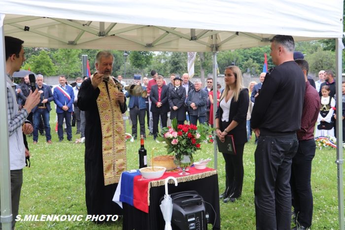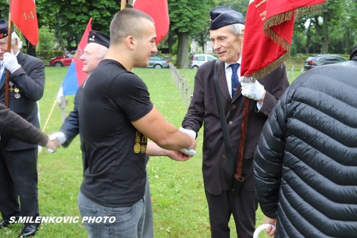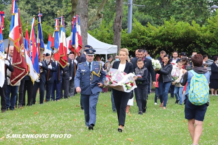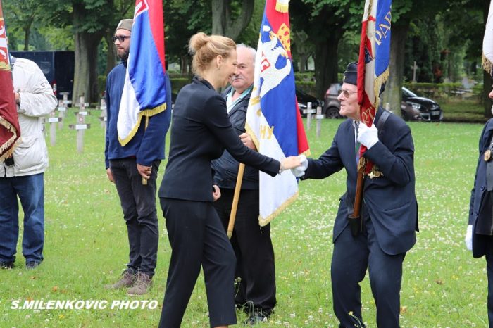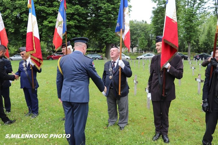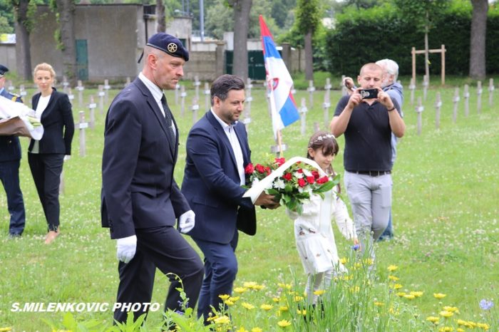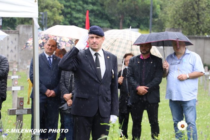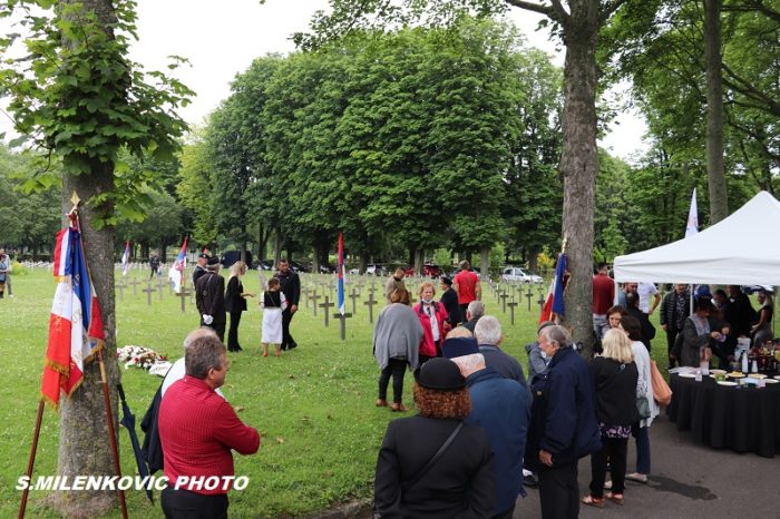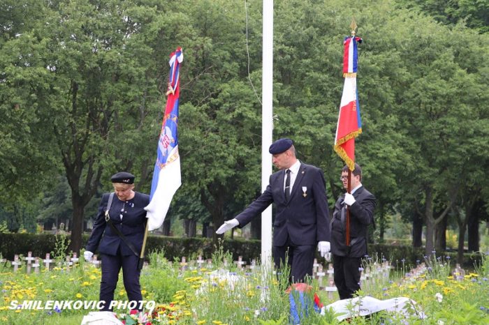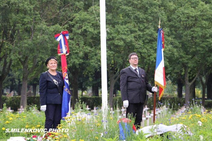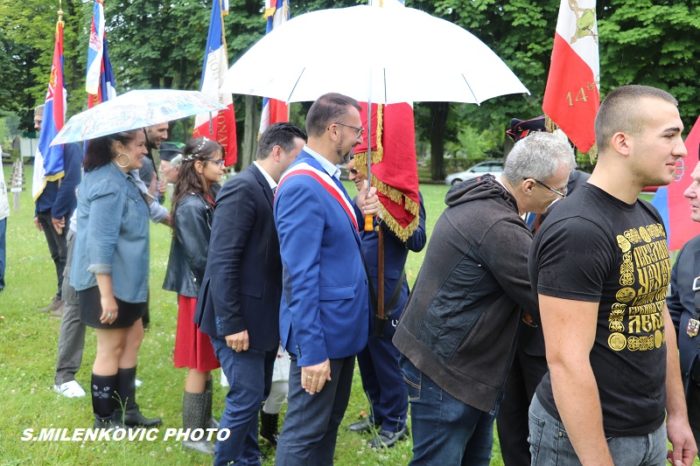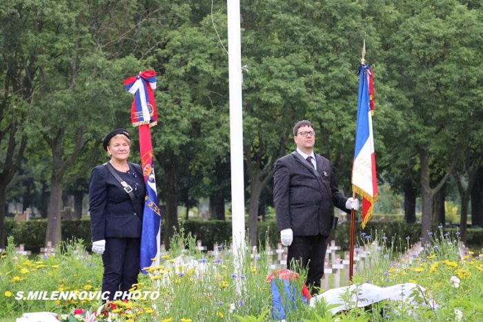 A onda i himnu Francuske. Posle francuske himne prisutnima se obratio Nenad Stojanović ispred udruženja „Kraljevina Srbija“ koje je jedan od organizatora ove ceremonije. Gospodin Stojanović je pozdravio sve prisutne, zahvalio im se na prisustvu i rekao da je naše prisustvo najmanje što možemo da uradimo da bi se odužili našim junacima koji su dali nešto najvrednije, a to je život, za našu slobodu. On je svima čestitao Vidovdan.