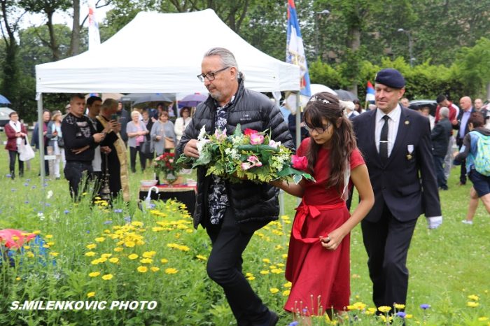 Posle službe pristupilo se polaganju venaca. Vence su položili predstavnici raznih udruženja iz Francuske a venac je prvi položio Nikola Milenković predstavnik „Pravoslavnog udruženja samo sloga Srbina spasava“ iz Lebana u Srbiji. Na kraju su venac položili konzul Srbije u Parizu, Ivana Stanković, i pukovnik Dejan Milosavljević.