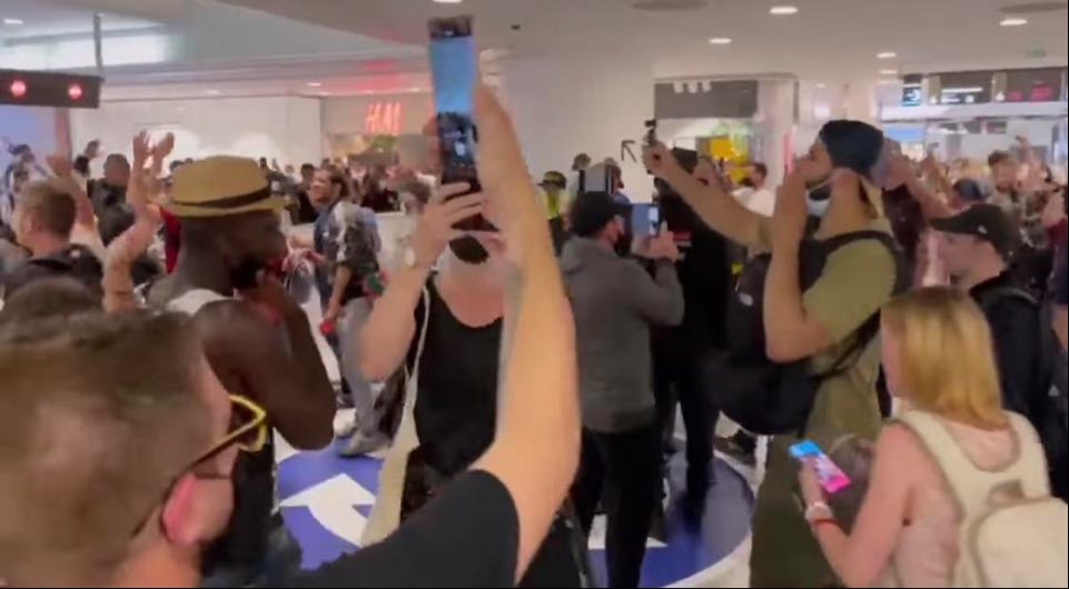 Za tržni centar Les Halles u srcu Pariza, obavezna vam je sanitarna propusnica. Ali to nije bio slučaj juče. Naime demonstranti su odgurali obezbeđenje i ušli uglavnom bez maski u ovaj tržni centar. Brzo je pozvana policija. Specijalna ekipa policije za rasturanje demonstracija je došla brzo i uhapsila dve osobe ali je pod pritiskom demonstranata morala da se povuče.